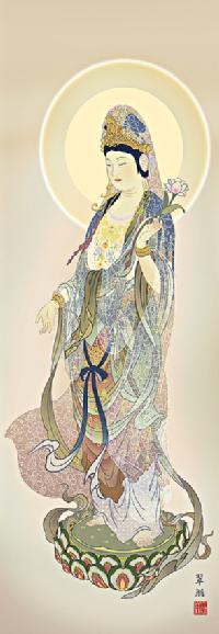 掛け軸(掛軸)販売通販なら掛け軸総本家 > 図柄から選ぶ > 仏画(仏事) > 聖観音 鈴木翠明 (白翠会) 尺三!
