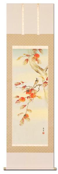 掛け軸(掛軸)販売通販なら掛け軸総本家 > 用途から選ぶ > 季節掛け > 松村朱夏 柿 尺五立【日本画家】肉筆!