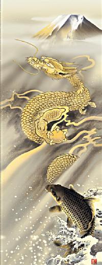 龍神があらゆる災いを追い祓う。黄河の上流にある龍門という激流遡った鯉が龍神となったという伝説。出世成功を願う人々の間で語り継がれた故事として伝えられました。